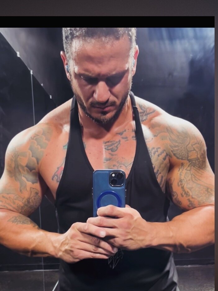 Marine Corps vet. Daddy Dom 🦁 (switch) leather fetishist watching Bodybuilder.