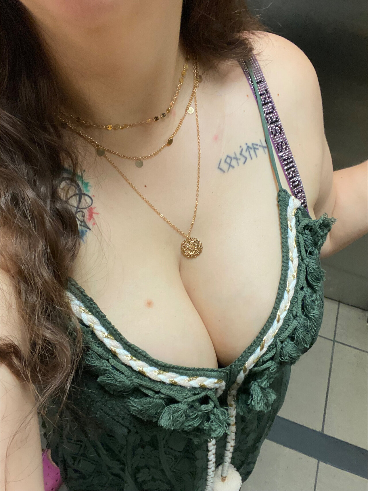 Big natural 36DD tits with nice nipples, big areolas, gushing wet pussy, slim waist with perfectly round ass, and grabbable hips.