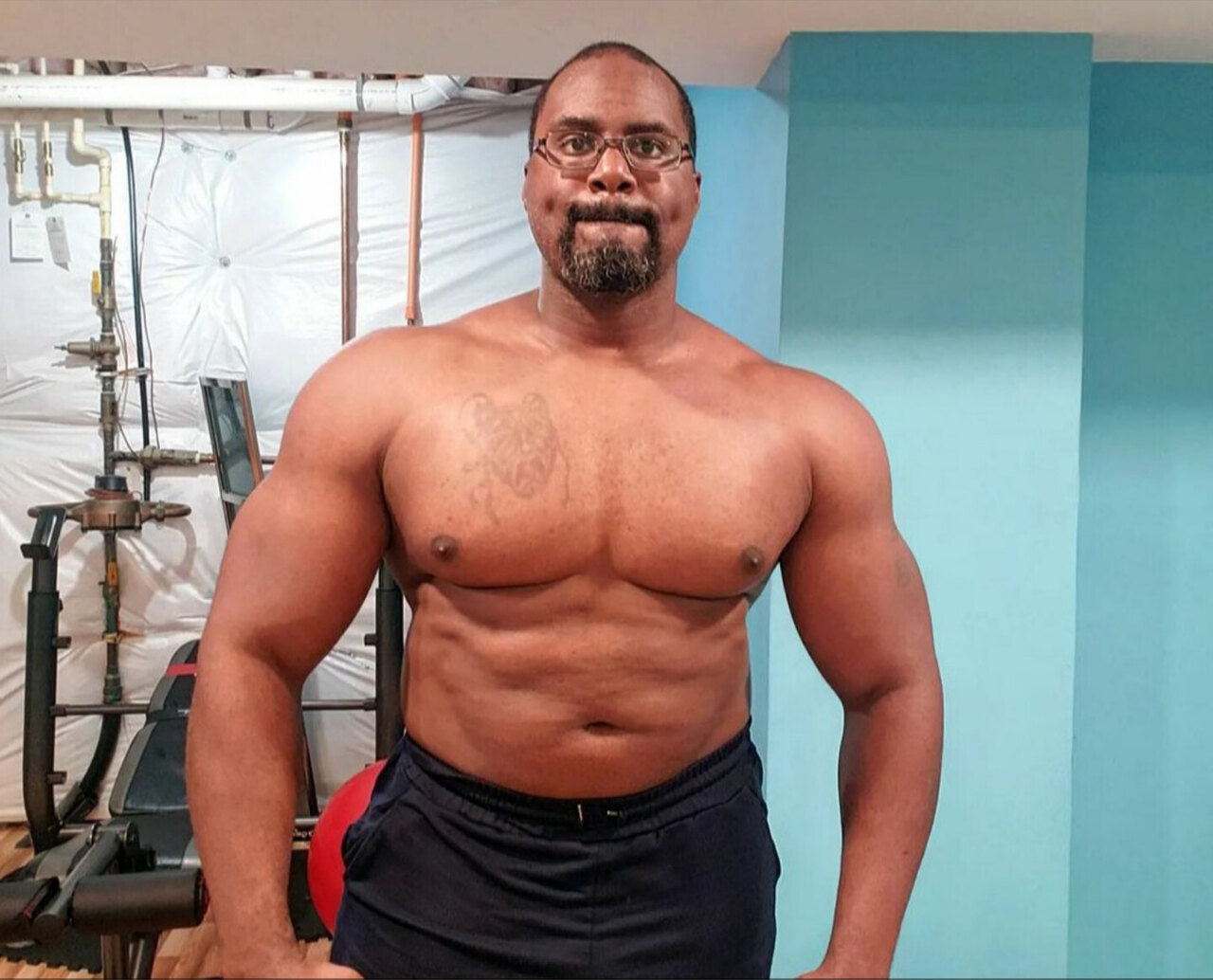 300lb+ powerlifting bodybuilder with a powerful, balanced physique built on strength, discipline, and presence.